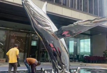 高端不銹鋼海豚雕塑,為售樓部門口增添完美視覺