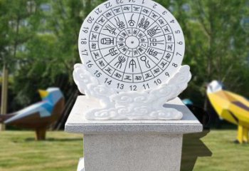 創(chuàng)意浮雕日晷雕塑日晷經常放置在庭園當中,很多大學校園中也會放置日晷雕塑。當日影投射在標有時刻的平面上,隨著太陽的移動,大理石日晷雕塑也跟著變動。根據(jù)其原理,日晷是可以設置在任何物體的表面上的,通過讓固定的指針產生陰影來測量時間。因此,大理石日晷雕塑有很多種不同的形式:地平式日晷、赤道式日晷、子午式日晷以及卯酋式日晷等等。
