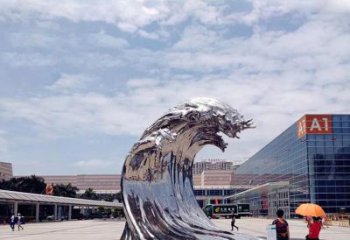 海邊巨型不銹鋼雕塑——精美的浪花鏡面裝飾