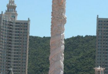 精美大型大理石石雕浮雕龍柱雕塑
