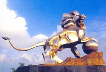 銅雕塑——鑄銅獅子,線條流暢,富有動感,栩栩如生